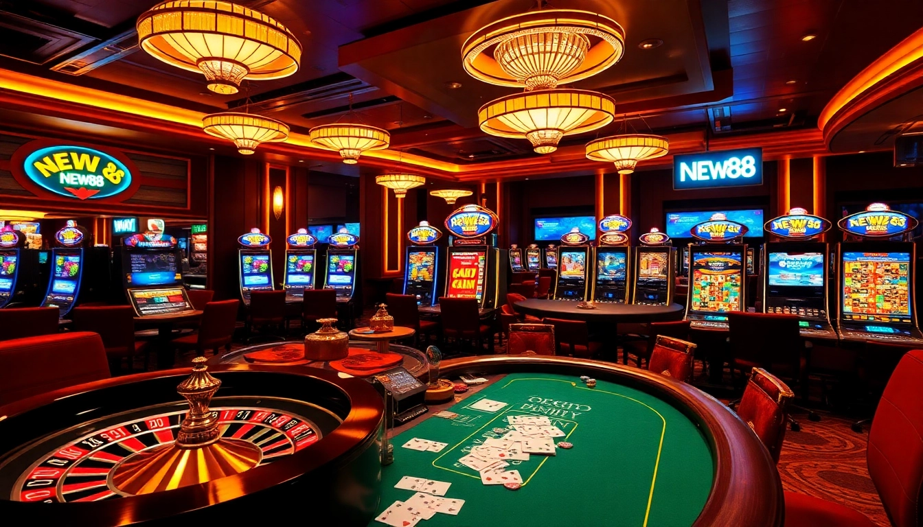 Experience the thrill of gaming at NEW88 with vibrant casino visuals and engaging elements.